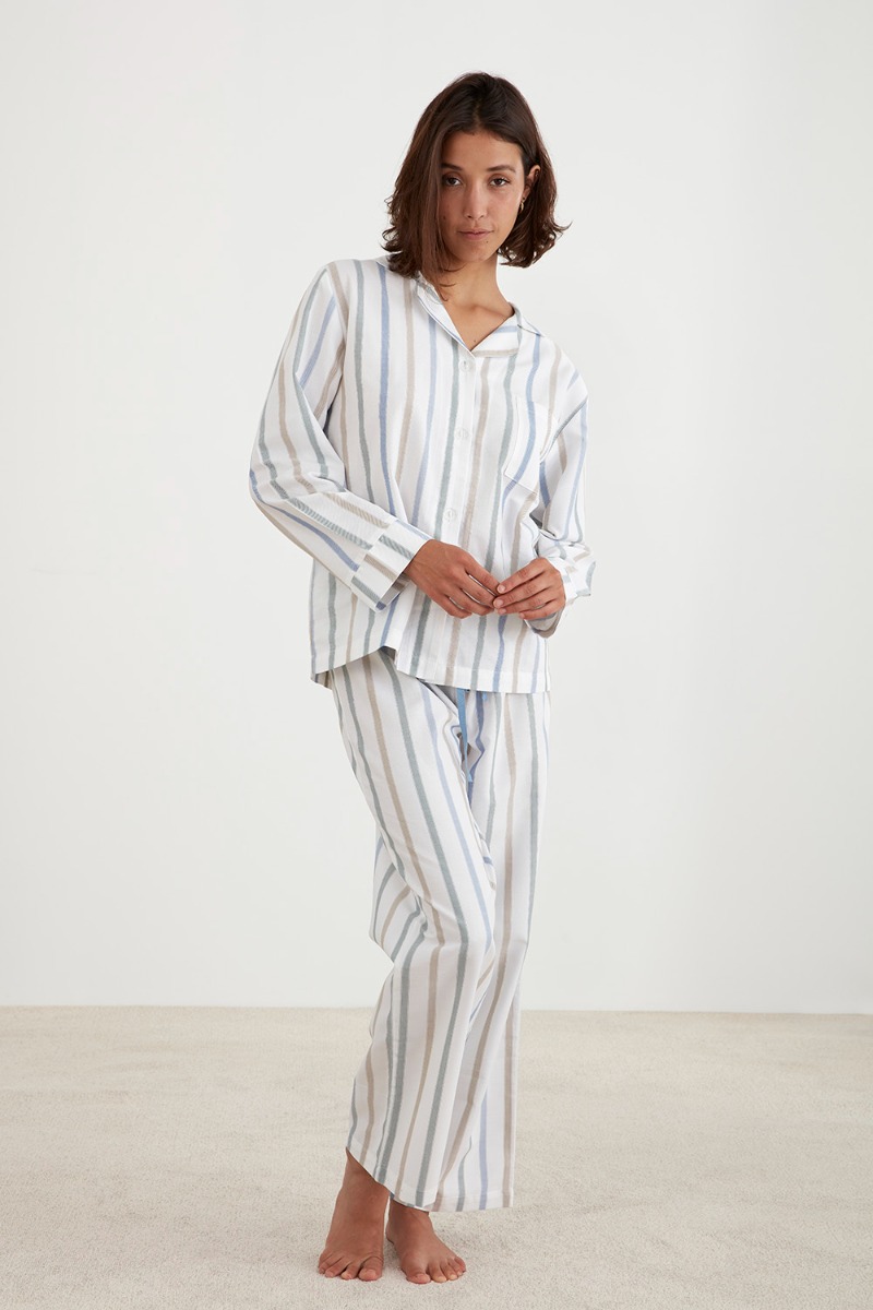 If your mum loves to sleep in luxurious sleepwear then look no further. Baksana has a wide range of high quality, long lasting sleepwear options sure to give her the perfect night’s sleep. The AW23 Sleepwear Collection makes a great gift for both style and comfort for her night-time routine. The Lennie Collection features a multi-coloured stripe design on a white background with light blue features, while the Chloe Collection features a green floral design with plain green features. Both sleepwear collections bring style and comfort to life with a range of sleepwear styles to choose from (Classic PJ set, Casual PJ Set, Nightshirt, and Nightie). Both collections are also made from 100% cotton, with causal tops, and nighties made from 95% cotton and 5% elastane for more comfort while they sleep.