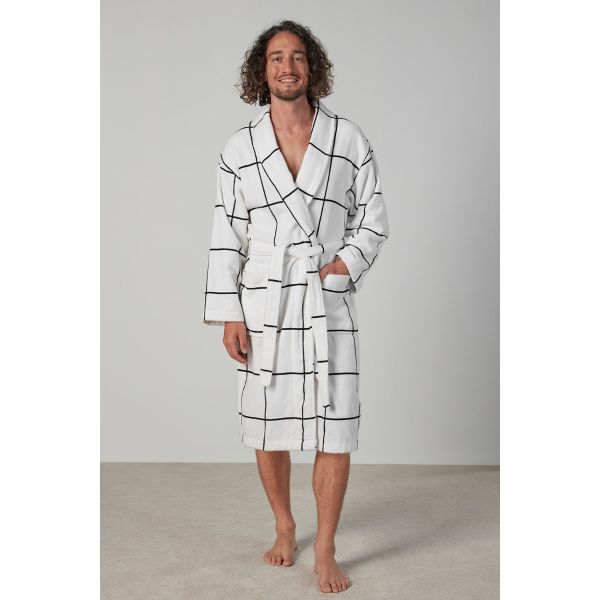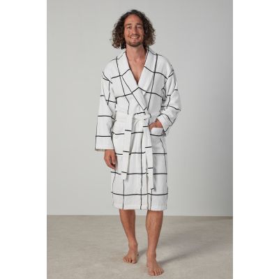 Marcus; this luxurious robe with a large check design allows for comfort at home and is the perfect gift for couples.